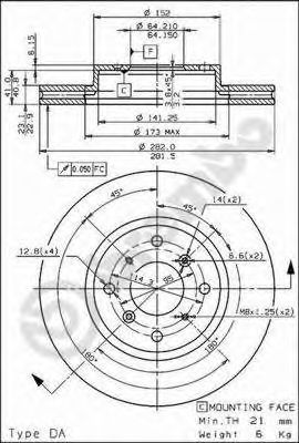 Диск тормозной передний HONDA CIVIC VI (282мм) DF4908
